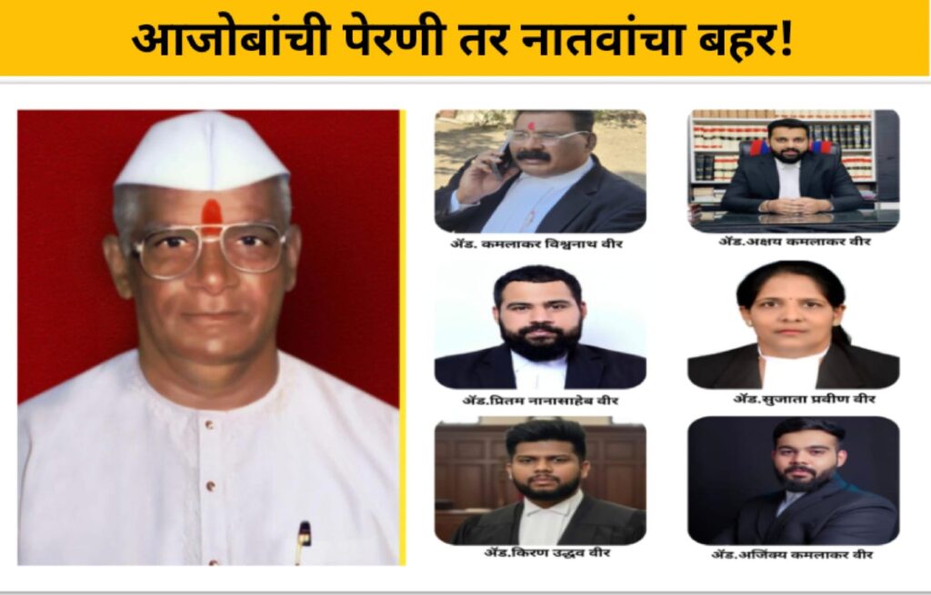 तात्यांनी आयुष्यभर जपलेली मूल्ये आणि वकिली क्षेत्राशी असलेले नाते ॲड.कमलाकर यांनी पुढे नेले. इतकेच नव्हे, तर त्यांनी आपल्या पुढील पिढीलाही याच क्षेत्रात घडवण्याचे काम केले. त्यामुळे तात्यांच्या विचाराचा वारसा घेत नातू ॲड.अक्षय कमलाकर वीर,ॲड.अजिंक्य कमलाकर वीर,ॲड.प्रितम नानासाहेब वीर , ॲड. किरण उध्दव( संजय) वीर व सून ॲड.सुजाता प्रवीण वीर व स्वत: ॲड. कमलाकर वीर असे आज वीर परिवारात तब्बल सहा वकील कार्यरत आहेत — एकाच कुटुंबातील सहा वकील ही अभिमानास्पद बाब आहे.