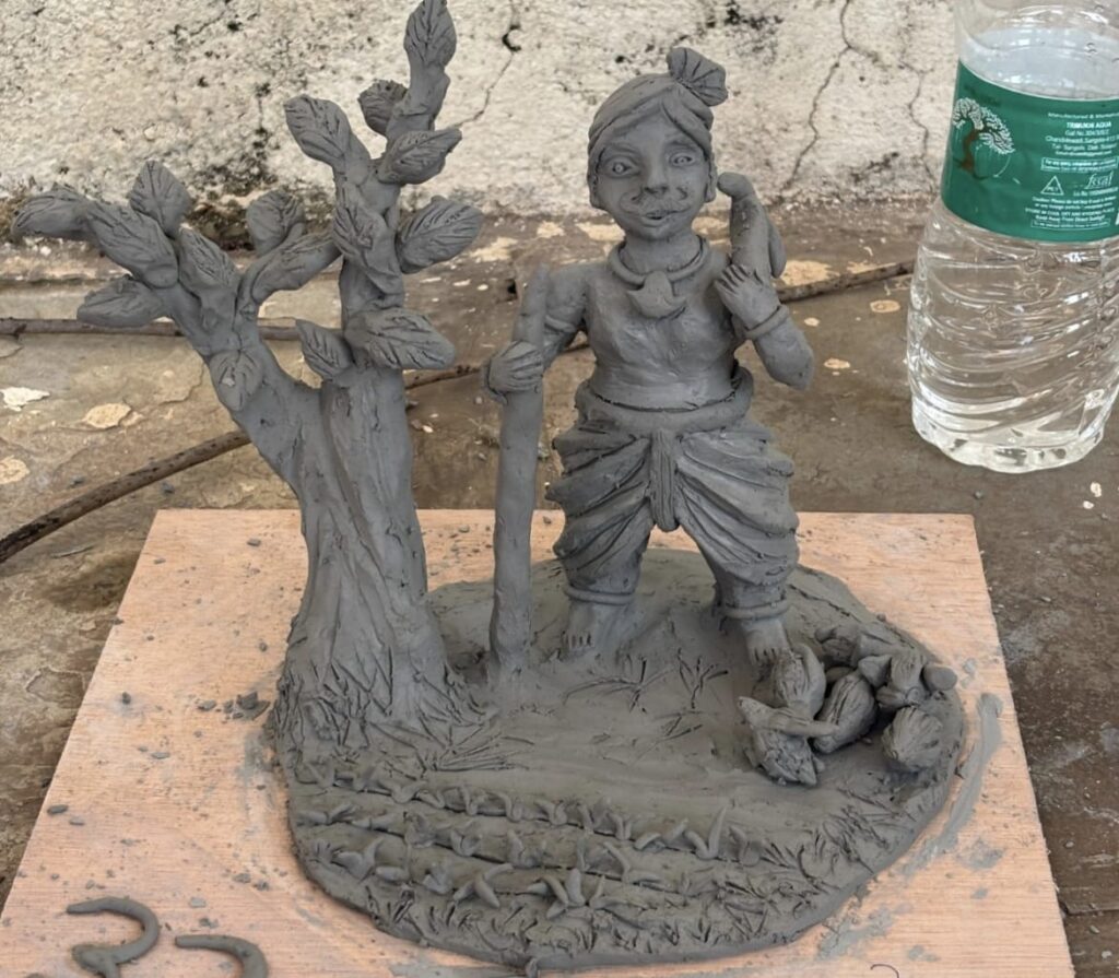 मातीकाम स्पर्धेत प्रांजली वायकुळे हिने मातीतून शेतकरी नांगर हाती घेऊन शेती करतानाचे जिवंत चित्रण साकारले. तिच्या कलाकृतीतून शेती, झाडे आणि शेतातील बारकावे वास्तवदर्शीपणे दिसून आले. दीक्षा कोपनर हिने मेंदी स्पर्धेत आकर्षक नक्षीकाम सादर करून उपस्थितांची प्रशंसा मिळवली.