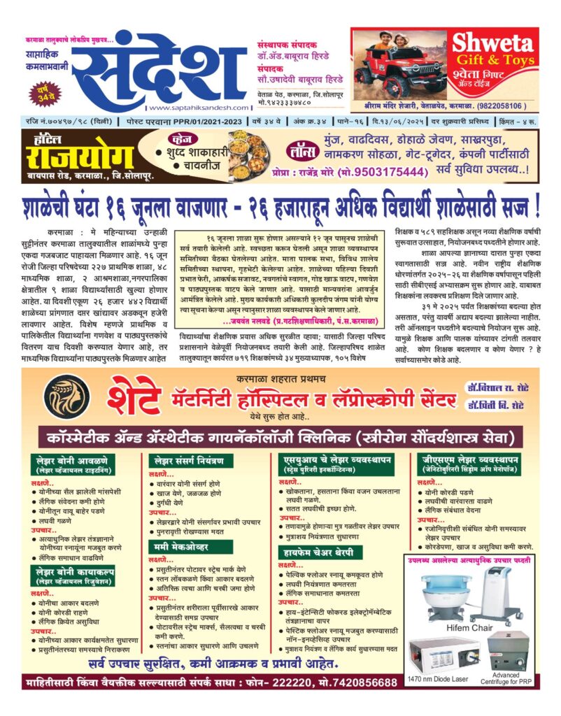 संदेश ई-पेपर साप्ताहिक संदेश ईपेपर 13 जून 2025 saptahiksandesh October 5, 2025 0 Saptahik Sandesh Epaper 14 JuneDownload Post Navigation Previous साप्ताहिक संदेश ईपेपर 6 जून 2025Next शिक्षक हा फक्त गतीच नव्हे तर योग्य दिशा देणारा दीपस्तंभ-डॉ. हिरडे. More News संदेश ई-पेपर साप्ताहिक संदेश ईपेपर 25 जुलै 2025 saptahiksandesh October 12, 2025 0 संदेश ई-पेपर साप्ताहिक संदेश ईपेपर 18 जुलै 2025 saptahiksandesh October 12, 2025 0 संदेश ई-पेपर साप्ताहिक संदेश ईपेपर 11 जुलै 2025 saptahiksandesh October 12, 2025 0 Leave a Reply Cancel replyYour email address will not be published. Required fields are marked *Comment * Name * Email * Website Save my name, email, and website in this browser for the next time I comment. Δ