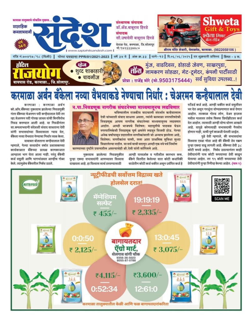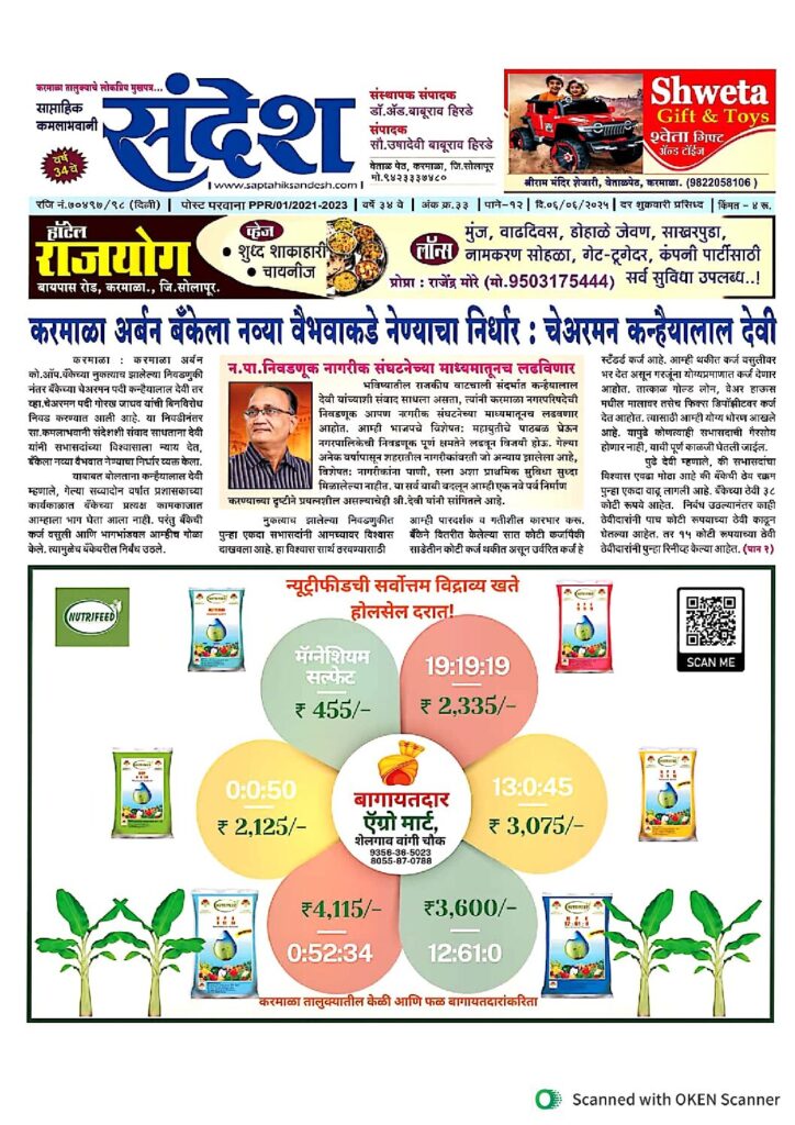 संदेश ई-पेपर साप्ताहिक संदेश ईपेपर 6 जून 2025 saptahiksandesh October 5, 2025 0 Saptahik Sandesh Epaper 06-june-25Download Post Navigation Previous साप्ताहिक संदेश ईपेपर 30 मे 2025Next साप्ताहिक संदेश ईपेपर 13 जून 2025 More News संदेश ई-पेपर साप्ताहिक संदेश ईपेपर 25 जुलै 2025 saptahiksandesh October 12, 2025 0 संदेश ई-पेपर साप्ताहिक संदेश ईपेपर 18 जुलै 2025 saptahiksandesh October 12, 2025 0 संदेश ई-पेपर साप्ताहिक संदेश ईपेपर 11 जुलै 2025 saptahiksandesh October 12, 2025 0 Leave a Reply Cancel replyYour email address will not be published. Required fields are marked *Comment * Name * Email * Website Save my name, email, and website in this browser for the next time I comment. Δ