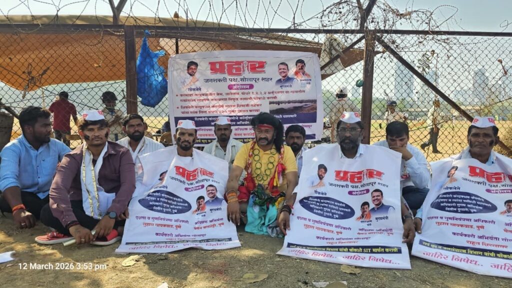 करमाळा तालुक्यातील तलाव कामातील कथित भ्रष्टाचाराविरोधात ‘प्रहार’चे मुंबईत अनोखे आंदोलन