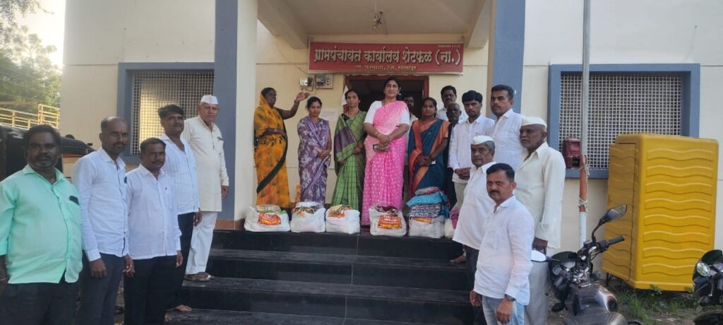 शेटफळ येथे अतिवृष्टीमुळे नुकसान झालेल्या कुटुंबांना तहसीलदारांच्या हस्ते मदत कीट वाटप