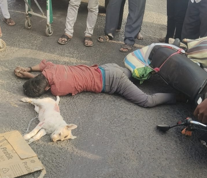 करमाळा बायपास रोडवर दुचाकीस्वार व कुत्र्याचा अपघाती मृत्यू