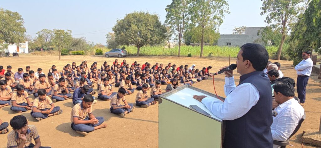 करमाळा (दि. २०): “ग्रामीण भागातील असल्याचा कोणताही न्यूनगंड विद्यार्थ्यांनी बाळगू नये. ग्रामीण भागातील विद्यार्थीही शहरी विद्यार्थ्यांइतकेच सक्षम असून त्यांनी ध्येय उंच ठेवावे व सातत्याने अभ्यास करावा. ग्रामीण-शहरी असा भेद न करता भारतीय प्रशासकीय सेवेतही ग्रामीण भागातील मुले मोठ्या पदावर पोहोचू शकतात,” असे प्रतिपादन रोटरियन गोविंद जगदाळे(माजी अध्यक्ष तथा रोटरी डिस्ट्रिक्ट ३१३१ चे चेअरमन, जगदाळे कोचिंग क्लासेसचे संस्थापक) यांनी केले. भोगेवाडी येथील संजय मामा शिंदे माध्यमिक विद्यालयात इयत्ता दहावीच्या विद्यार्थ्यांना रोटरी क्लब ऑफ वाल्हेकरवाडीच्या वतीने मोफत नोट्सचे वाटप करण्यात आले यावेळी ते बोलत होते.