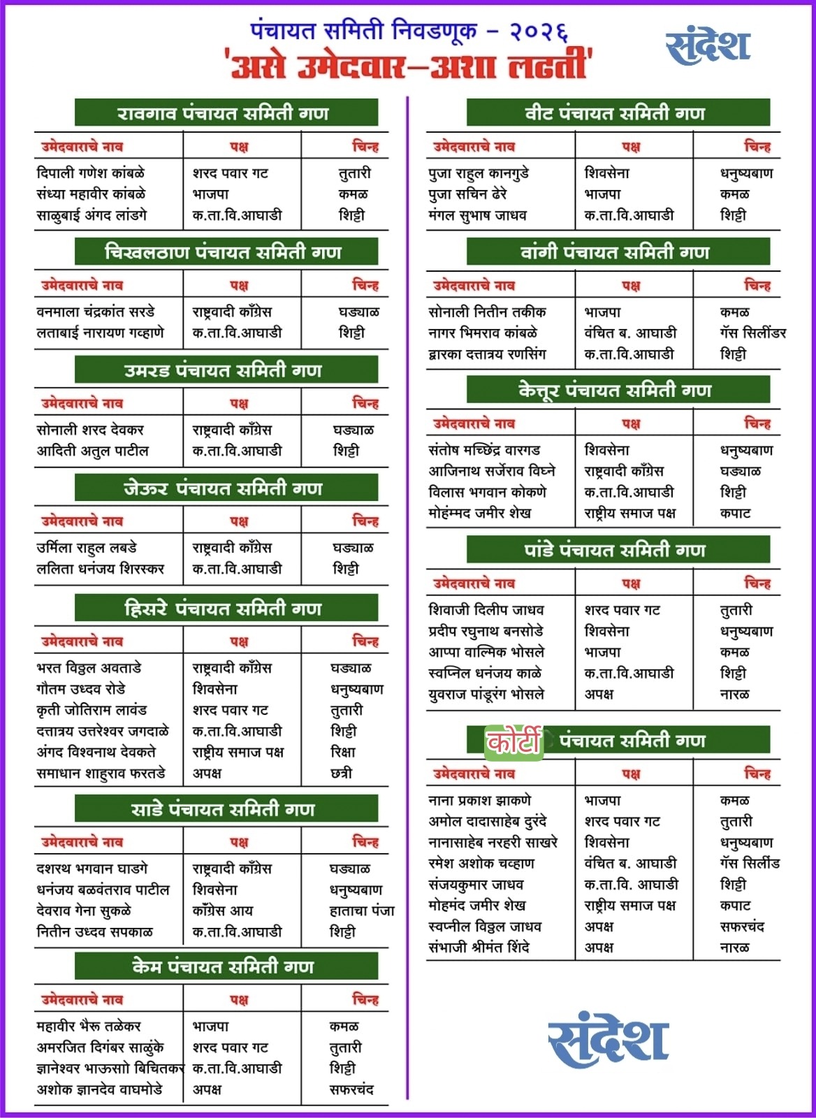 पंचायत समिती निवडणुकीत १२ जागेसाठी ४२ जण रिंगणात तर जिल्हा परिषदेच्या ६ जागेसाठी २० जण रिंगणात