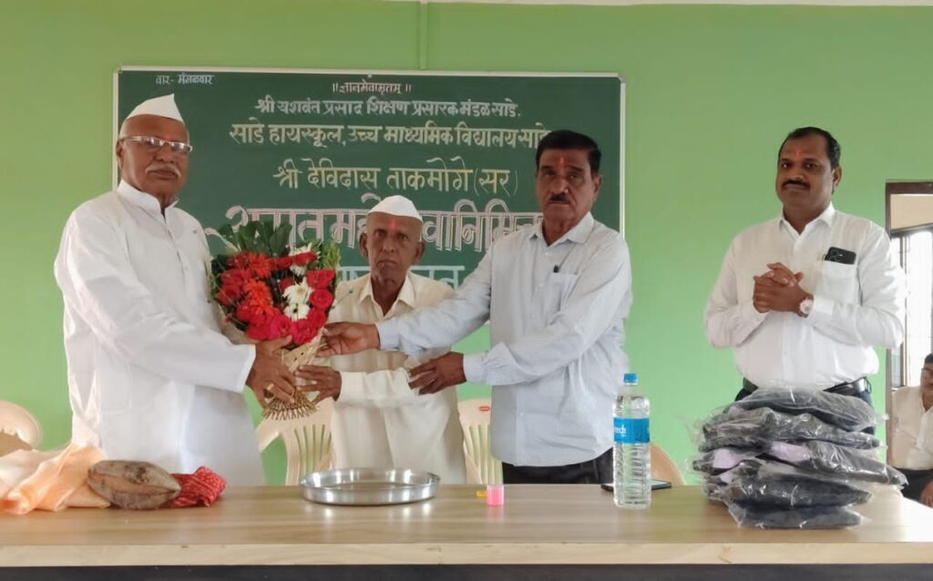 साडे येथील माध्यमिक विद्यालयात त्यांच्या ७५ व्या वाढदिवसानिमित्त आयोजित सत्कार समारंभात ते बोलत होते. कार्यक्रमाच्या अध्यक्षस्थानी संस्थेचे विश्वस्त गोकुळबापू पाटील होते. यावेळी मागासवर्गीय वसतिगृहातील विद्यार्थ्यांना गणवेश वाटप करण्यात आले. तसेच साडे जिल्हा परिषद शाळा व श्री समर्थ वारकरी संस्थेतील मुलांना खाऊचे वाटपही करण्यात आले.