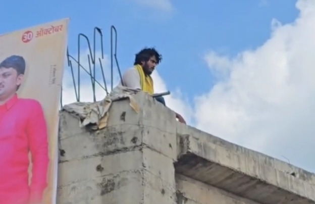 धनगर समाजाला आरक्षणाच्या मागणीसाठी युवकाचे बायपास पुलावर आंदोलन