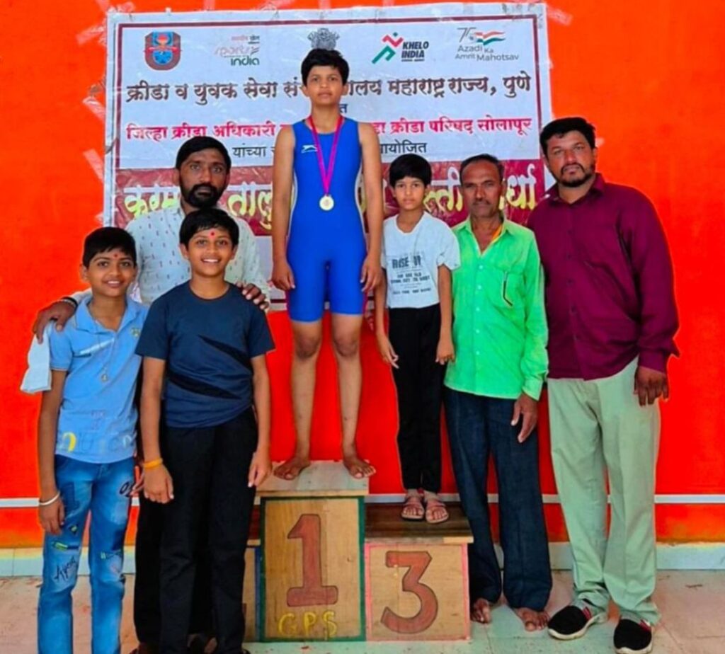 केम(संजय जाधव):क्रीडा युवक व सेवा संचालनालय महाराष्ट्र राज्य, जिल्हा परिषद सोलापूर व पंचायत समिती करमाळा यांच्या संयुक्त विद्यमाने आयोजित शालेय क्रीडा कुस्ती स्पर्धेत राजाभाऊ तळेकर विद्यालयाची विद्यार्थिनी समृद्धी सचिन तळेकर (इयत्ता आठवी) हिने ४६ किलो वजनी गटात मॅटवरील प्रकारात प्रथम क्रमांक पटकावला. या यशामुळे तिला जिल्हास्तरीय स्पर्धेसाठी पात्रता मिळाली.